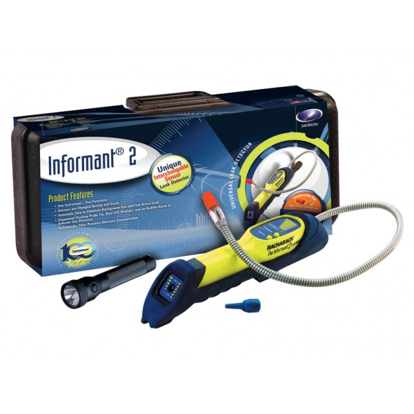 El Bacharach Informant® 2 es un detector de fugas excepcionalmente flexible diseñado para contratistas de calefacción y refrigeración residenciales y comerciales. Es el único detector de fugas de doble uso que puede cambiar de gases refrigerantes a gases combustibles (y viceversa) en segundos Esta unidad sustituye dos detectores de fugas dedicados, para ahorrar espacio en el camión y dinero en la cartera.