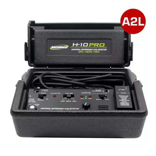 El detector de fugas de refrigerante H-10 PRO es un detector de fugas de refrigerante universal de alta capacidad de respuesta que utiliza la tecnología de sensor de diodo calentado de Bacharach, de eficacia comprobada. Es ultrasensible a todos los refrigerantes CFC, HFC y HCFC halogenados y no inflamables para un uso fiable en una amplia gama de aplicaciones de detección de fugas de refrigerante. De hecho, es el detector de fugas de aire acondicionado en el que confían los técnicos.