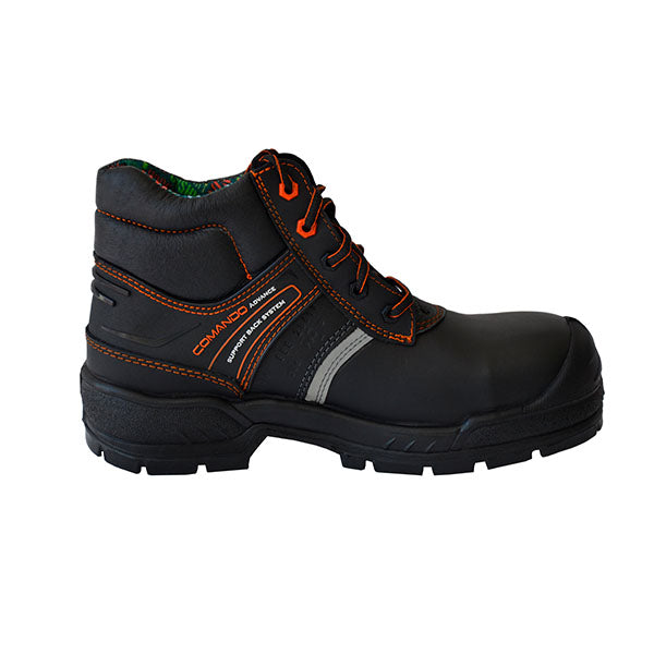 El Borceguí Comando 2201 (o 2205) PP+D Safe Work es un calzado industrial de alta seguridad con casquillo de policarbonato (PP) y características dieléctricas (D), fabricado en piel vacuna con suela antiderrapante de poliuretano-Ruberlight resistente a aceites y solventes. Es ideal para trabajos exigentes por su confort y protección reforzada.